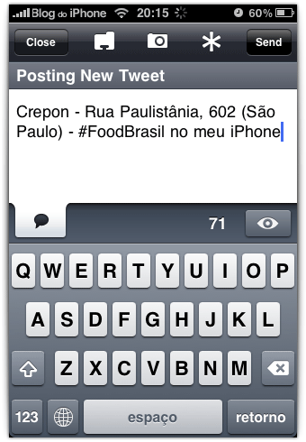Além disso, você pode postar no twitter um comentário com o endereço e nome de onde você está, com apenas um botão.