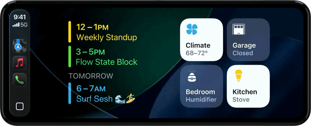 Antes disponíveis apenas no CarPlay Ultra, os widgets personalizáveis agora chegam ao CarPlay comum.