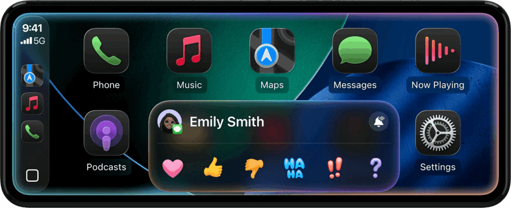 Interagir com mensagens enquanto dirige ficou mais prático. A partir do iOS 26, o CarPlay passa a suportar:
