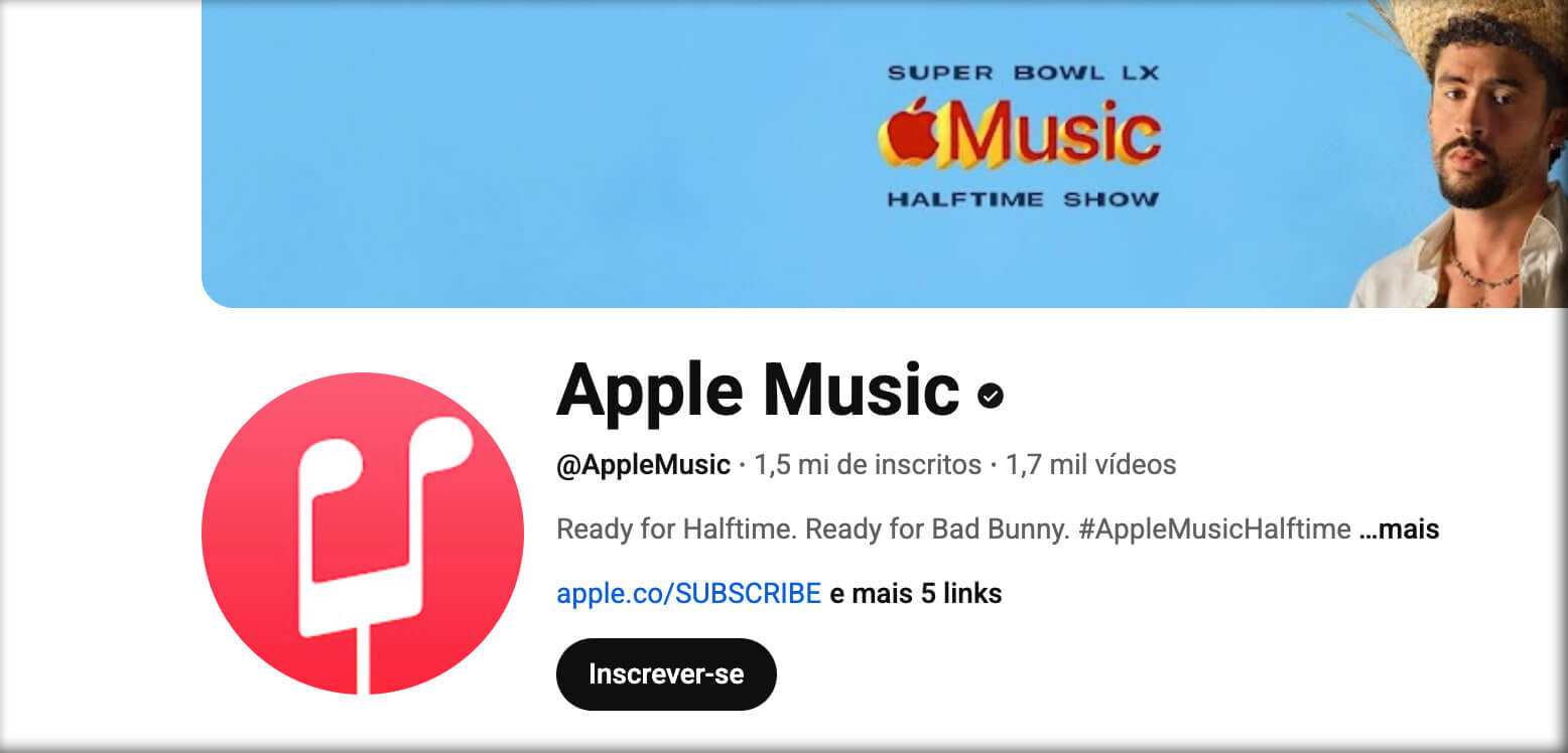 Para entender a importância do Super Bowl para a Apple, ela até alterou o logo do Apple Music no canal do YouTube, em referência ao poste de field goal do futebol americano.