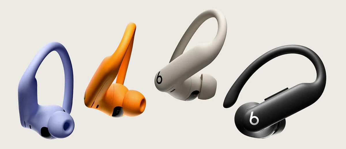 Os Powerbeats Pro 2. Seu design com earhooks garante fixação segura durante exercícios intensos e eles têm maior resistência ao suor.