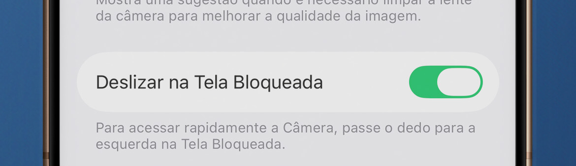 Ao desativar essa opção, o gesto de deslizar para a esquerda na tela bloqueada deixa de funcionar, mas o app Câmera continua acessível normalmente.