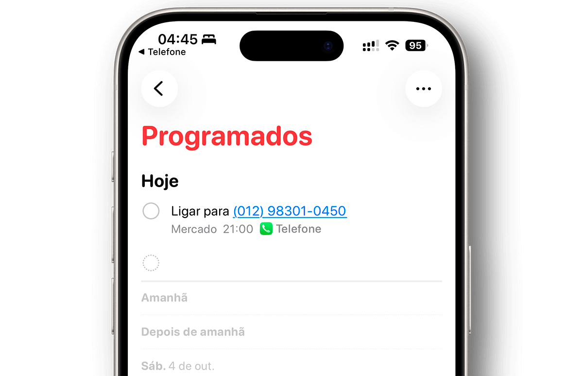 O iOS 26 trouxe uma novidade muito útil para resolver isso: agora é possível criar um lembrete diretamente do app Telefone, sem precisar abrir nenhum outro aplicativo.