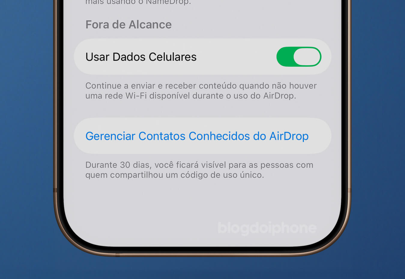 É uma lista prática para acompanhar quais aparelhos podem encontrar o seu via AirDrop sem fazer parte dos seus contatos reais.