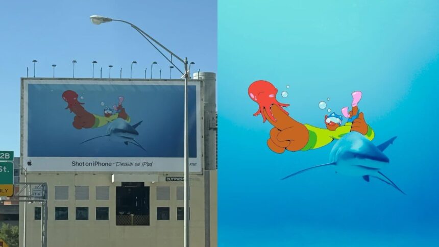 Parte da campanha Shot on iPhone, Drawn on iPad, o cartaz mistura uma foto tirada com um iPhone e rabiscos criativos feitos com o iPad. Até aí, tudo normal.