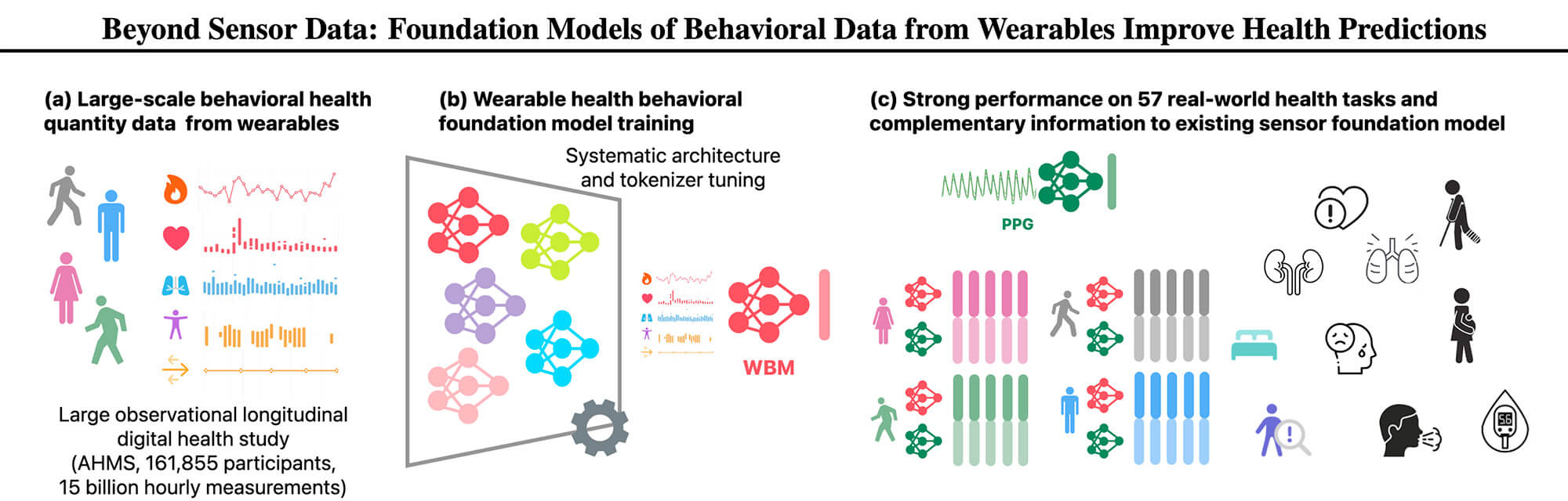 Com mais de 162 mil participantes e 15 bilhões de medições horárias, o estudo introduziu um novo conceito chamado WBM (Wearable Behavior Model) — um modelo de aprendizado de máquina treinado com dados comportamentais derivados dos sensores do Apple Watch.